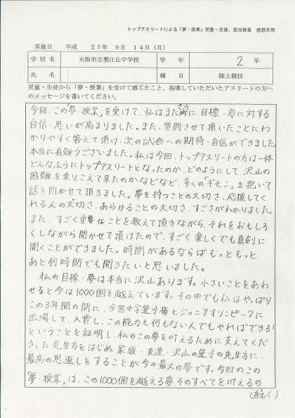 なお、子どもたちのすべての感想文は、荒川選手に届けられます。