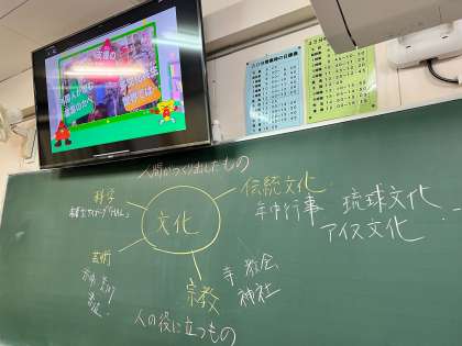 3年社会科では、公民的分野で文化について学び、多文化共生について考えています。