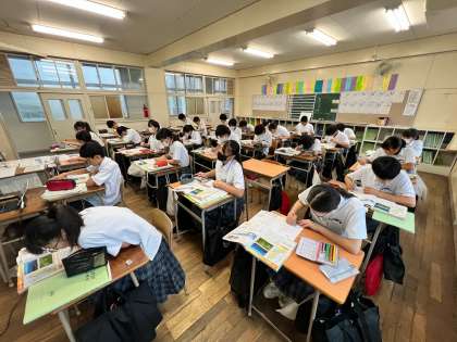 2年社会科では、地理的分野として東北地方について学んでいます。今日は東北地方の生活や文化に関心をもち、東北地方の自然環境について、自分で地図にまとめています。