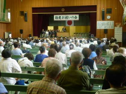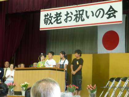 校区、清水丘小学校では、この清水丘町会に住まわれるお年寄りの方々を招いて、「敬老記念式典」が開催されました。