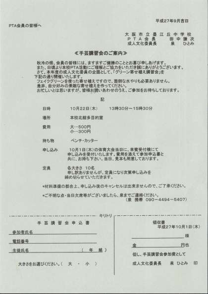 PTA「手芸講習会のお知らせ」