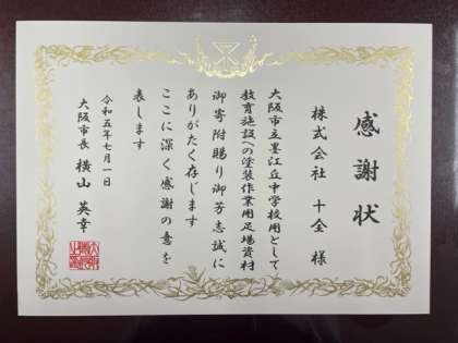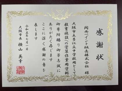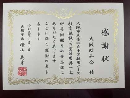 7/1 大阪市長より感謝状
