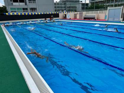 水泳部は府大会出場にむけて、日々の練習メニューを精一杯こなしています。
