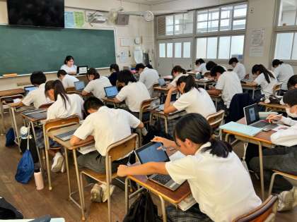 3年国語では、タブレットPCを用いて、チャレンジテストの問題に取り組んでいます。