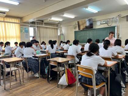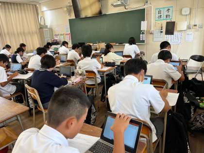 2年家庭科では、郷土料理についてタブレットPCで調べたことをレポートにまとめています。