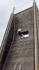 人間健康学部教授の安田先生が考えられた『アドベンチャープログラム』を体験させていただきました。〈チームビルディング〉〈自己の役割と責任を果たすことの大切さ〉をテーマに、大学生の皆さんのサポートを受けながら、貴重な体験をさせていただきました。