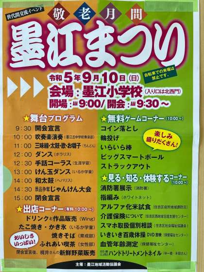 墨江地域活動協議会が主催する「世代間交流イベント 敬老月間 墨江まつり」が、墨江小学校で開催されました。
