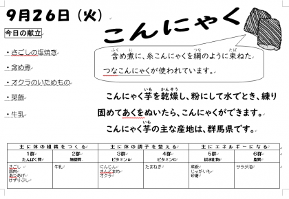 本日の給食は、次の通りです。