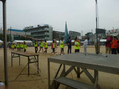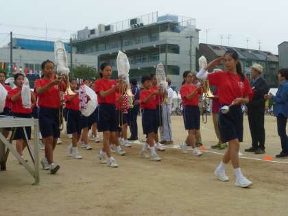 町会ごとの入場行進では、本校吹奏楽部が伴奏し、区長さんも見学に来られていました。