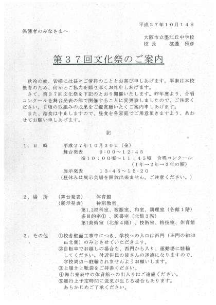 「文化祭の案内」プリント配布しました。