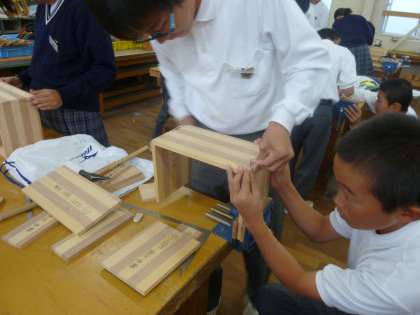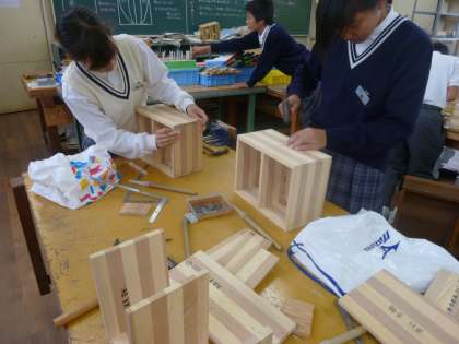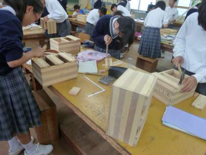 1年生の技術家庭科では「CDラック」の製作実習に取り組んでいます。