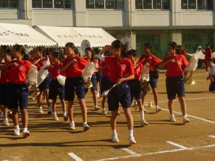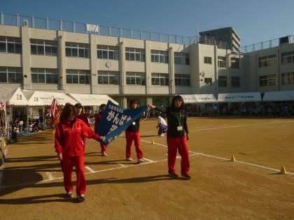 開会式では、本校吹奏楽部の演奏で入場行進が始まり、各町会ごとに入場して来ます。