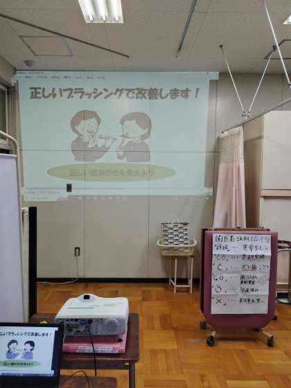 待っている人も、スライドを見て歯の健康について学ぶ機会となりました。