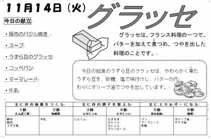 本日の給食は上記の通りです。