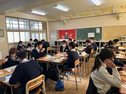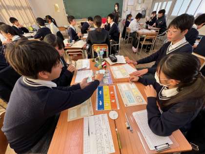 3年社会科では、株式会社のしくみを、シミュレーションゲーム「ブルサ」を通じて学んでいます。