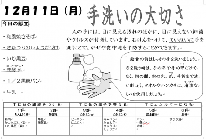 明日の献立は、「冬野菜のカレーライス」・「ブロッコリーとコーンのサラダ」・「黄桃」などです。