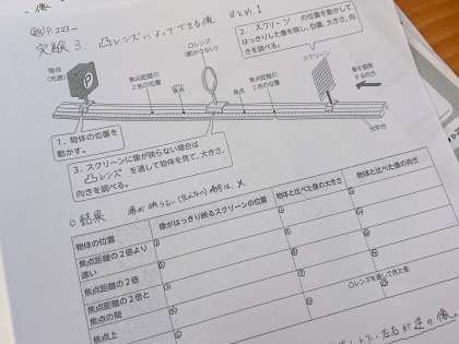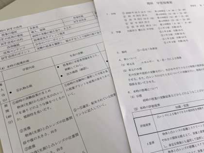 1年理科では、タブレットPCをつかい、光の屈折実験からわかることをまとめていました。