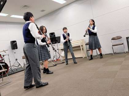 12月27日(水)に八尾市文化会館で、大阪府アンサンブルコンテストが行われ、吹奏楽部のクラリネット4人が出場しました。