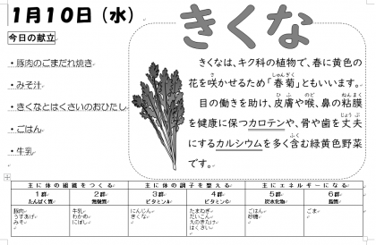 今年最初の給食は上記の通りです。