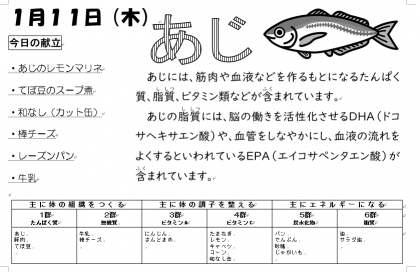 昨日と同様で三年生はありませんでしたが、「レーズンパン」、いためた玉ネギに米酢やレモン汁などを煮た「あじのレモンマリネ」、豚肉やじゃがいも・キャベツ・にんじんなどを煮た「てぼ豆のスープ煮」、「和なし」、「棒チーズ」などをおいしくいただきました。