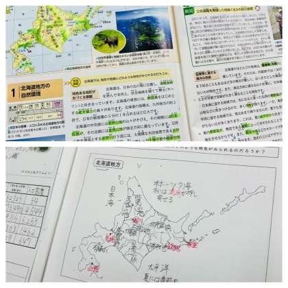 今日は、個人やグループで、他の都道府県と比べたら北海道の特色を考え、北海道の自然環境について調べたことをまとめました。