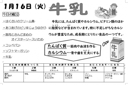 「コッペパン」、鶏肉とはくさい・たまねぎ・にんじん・チンゲンサイ・しいたけなど野菜たっぷりの「はくさいのクリーム煮」、「厚あげのピリ辛じょうゆかけ」・「豚肉と三度豆のオイスターソース炒め」などをおいしくいただきました。