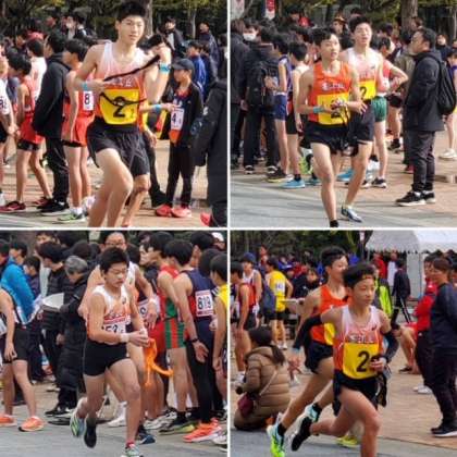 女子は、1区、2区、5区が2.8キロ 3.4区間が1.4キロで大阪市の中学校が集まり学校対抗駅伝大会を行いました。