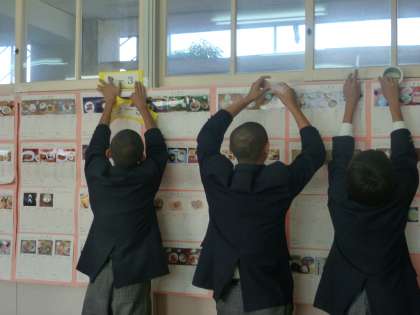 体育館では、いすを出したりの会場設営、教室では、展示発表の作成や掲示と、一生けん命に、取り掛かりました。