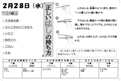 「ごはん」、牛肉・糸こんにゃく・とうふ・白菜・白ねぎ・まいたけなどの「すき焼き煮」、「三度豆のごまあえ」・「いちご」・「焼きのり」などをおいしくいただきました。