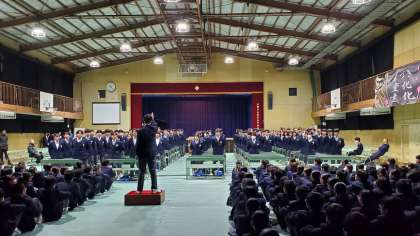 明日の卒業式を控えて、今日は在校生全員による、卒業生を送る会を行いました。