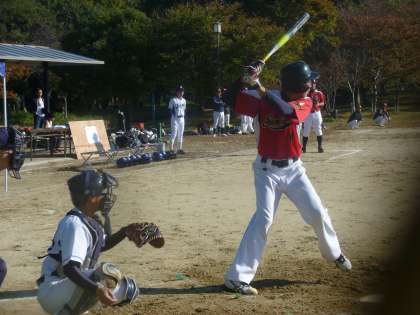 住吉区を勝ち抜き、代表となった本校は、11月3日(火)南港中央公園野球場で、西成区代表の天下茶屋小学校と南ブロック大会に臨みました。