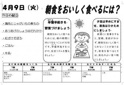 給食初日の本日の献立は、上記の通りです。