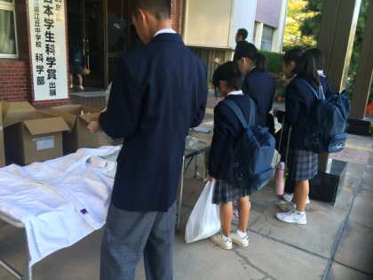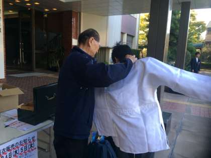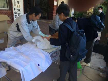今日も、登校の時に、スポーツ店さんが来られて、1年生用に柔道着の販売を行っています。