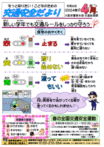 春の全国交通安全運動実施中(4月6日〜15日)です。