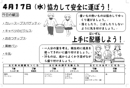 本日の給食は上記の通りです。