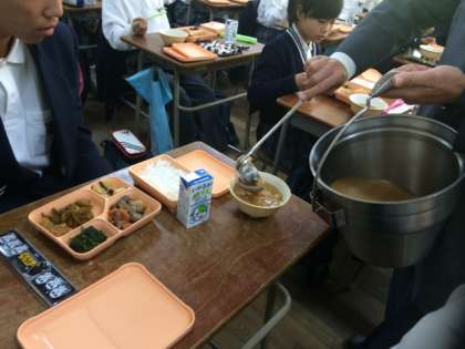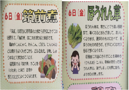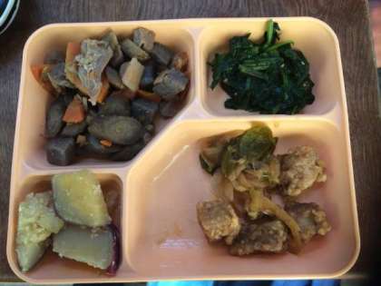 今日の給食「筑前煮・ほうれん草のごま和え・味噌汁」