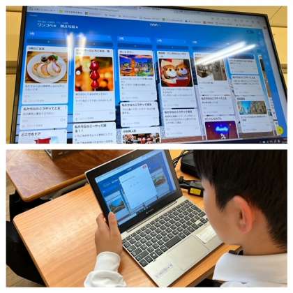 2年総合では、校外学習にむけた探究学習を行っています。今回のスローガンは「ワンダフル神戸プロジェクト〜撮ってなんぼや映え写真〜」です。