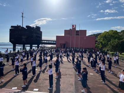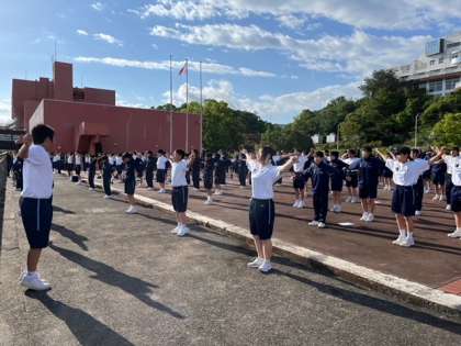 それでも、元気よく体育館で各学級でチームビルディングを行っています。
