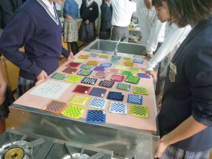 二つ目は、家庭科授業作品で、「コースター」製作です。