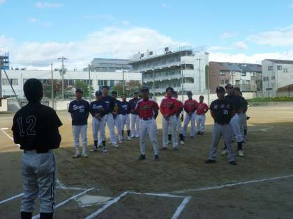 残念ながら、午前中の女子の部は、雨のためできませんでしたが、午後の男子の部は、皆さんの懸命のグランド整備のおかげで開催することができました。
