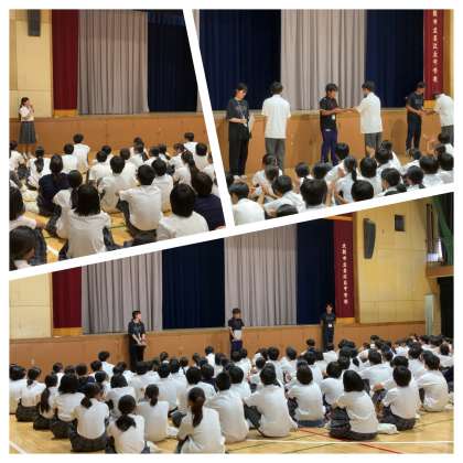 「教育実習生王」「これは何でしょう」の2つのクイズやゲームを行い、最後に委員長から色紙を渡し、実習生の皆さんから最後のメッセージをいただきました。3週間という短い間でしたが、本当にありがとうございました。ぜひ立派な先生になってください。