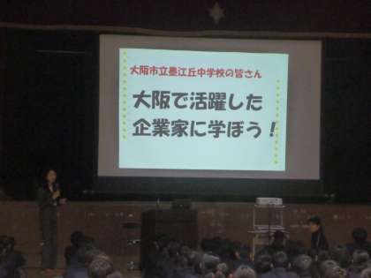 今回は、その準備学習として「大阪企業家ミュージアム」から講師の先生をお招きして、「大阪で活躍した企業家」というテーマで、お話をいただきました。