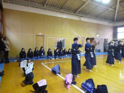 また、剣道部では、防具をつけての練習に驚いた様子で、実際の竹刀や面を触って見学することができました。