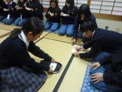 茶道部では、お点前の披露があり、実際にお茶をいただきました。