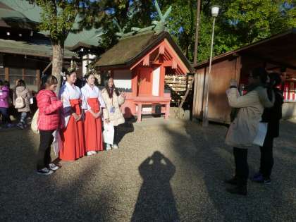 巫女さんとの写真も思い出の1枚になりました。