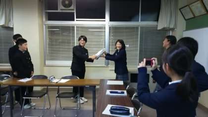 交流話し合いの最後に、本校から記念品をお渡ししました。