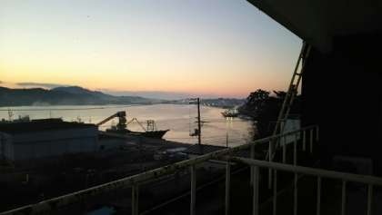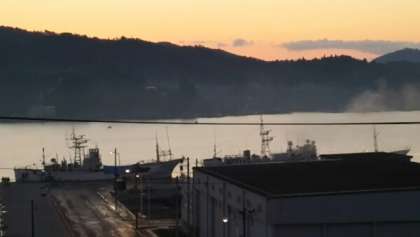 最初は津波の大きな被害を受けほぼ全壊し、その後、復興が進む朝焼けの気仙沼港の様子です。(東日本の朝は西日本に比べ早いです)