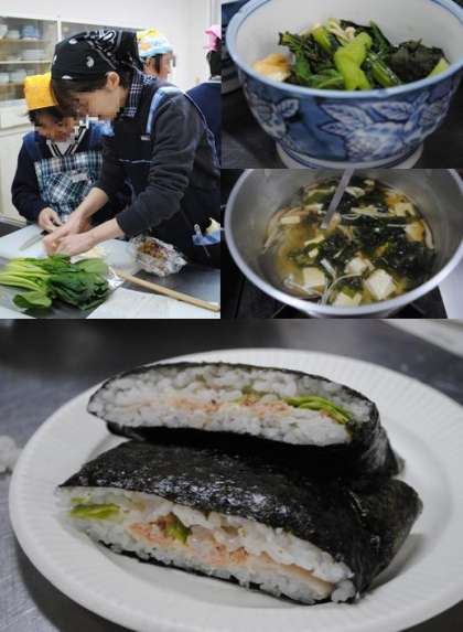 次に、栄養士桑田さんより本日のレシピ(おにぎらず・野菜とうす揚げの煮物・みそ汁)とその作り方について説明していただきました。