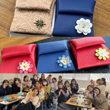 その後、体験学習として「革細工」を使った小物入れを作成しました。