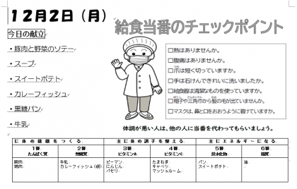 本日の給食は上記の通りです。